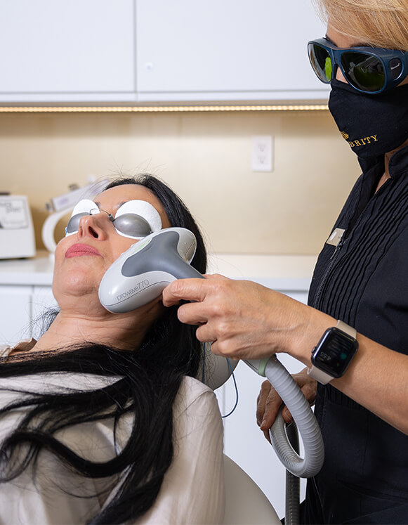 Titan utilizes a safe, infrared light to heat the dermis well below the skin’s surface. This heating can cause immediate collagen contraction resulting in tighter skin. After the procedure, new collagen formation results in further tightening with the improvement of lax skin, folds and lines.